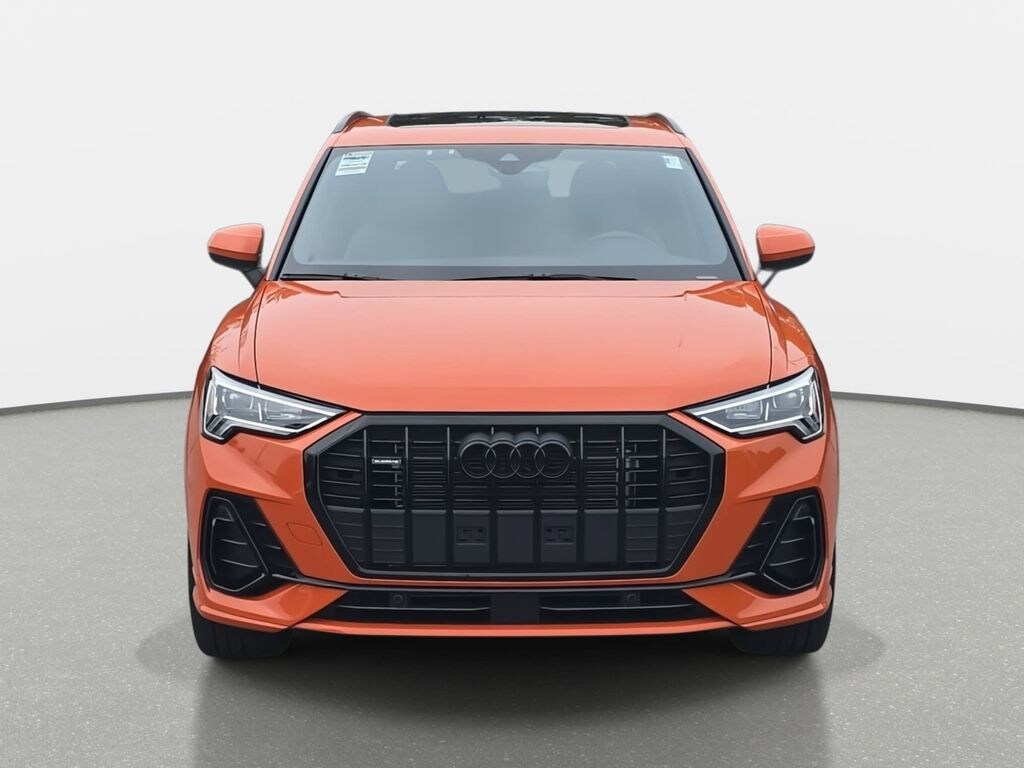 Orange 2025 Audi Q3 Premium S Line quattro 8-Speed Automatic with Tiptronic 2.0L 4-Cylinder TFSI quattro CARFAX One-Owner. Clean CARFAX. Alarm with Motion Sensor, Audi Advanced Key, Auto-Dimming Power-Folding Exterior Mirrors, Auto-Dimming Rear-View Mirror, Black Exterior Trim, Black Optic Sport Package, Black Roof Rails, Convenience Package, Driver Seat Memory, Garage Door Opener (HomeLink), LED Interior Lighting Package, SiriusXM with 360L (3 Months Trial), Sport Front Bucket Seats, Wheels: 19" 5-Double-Arm Design, Wireless Phone Charging Pad.