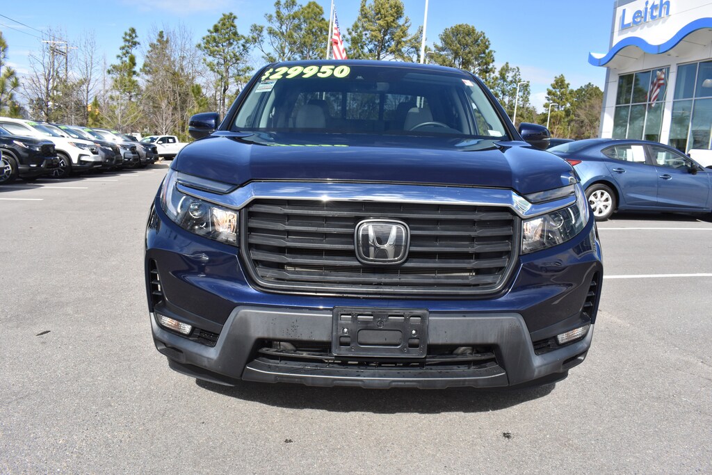 Clean CARFAX. CARFAX One-Owner. Obsidian Blue Pearl 2023 Honda Ridgeline RTL AWD 9-Speed Automatic 3.5L V6 SOHC i-VTEC 24V 4-Wheel Disc Brakes, 4.33 Axle Ratio, 7 Speakers, ABS brakes, Air Conditioning, Alloy wheels, AM/FM radio: SiriusXM, Apple CarPlay/Android Auto, Auto-dimming Rear-View mirror, Automatic temperature control, Blind Spot Information (BSI) System warning, Bluetooth® Hands-Free Link, Brake assist, Bumpers: body-color, Delay-off headlights, Driver's Seat Mounted Armrest, Dual front impact airbags, Dual front side impact airbags, Electronic Stability Control, Exterior Parking Camera Rear, Four wheel independent suspension, Front anti-roll bar, Front Bucket Seats, Front dual zone A/C, Front fog lights, Fully automatic headlights, Garage door transmitter: HomeLink, Heated door mirrors, Heated Front Bucket Seats, Heated front seats, Illuminated entry, Leather Seat Trim, Low tire pressure warning, Memory seat, Occupant sensing airbag, Outside temperature display, Overhead airbag, Panic alarm, Passenger seat mounted armrest, Power door mirrors, Power driver seat, Power moonroof, Power passenger seat, Power steering, Power windows, Radio data system, Radio: 215-Watt Audio System w/7 Speakers, Rear air conditioning, Rear anti-roll bar, Rear reading lights, Rear seat center armrest, Rear step bumper, Rear window defroster, Remote keyless entry, Security system, SiriusXM, Speed control, Speed-sensing steering, Split folding rear seat, Steering wheel mounted audio controls, Tachometer, Telescoping steering wheel, Tilt steering wheel, Traction control, Trip computer, Turn signal indicator mirrors, Variably intermittent wipers, Wheels: 18" Exclusive Pewter Gray Alloy.