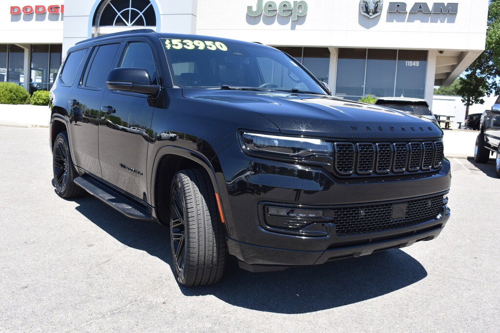 Clean CARFAX. CARFAX One-Owner. Priced below KBB Fair Purchase Price! Diamond Black Crystal Pearlcoat 2024 Jeep Wagoneer Series II 4WD 8-Speed Automatic 3.0L I6 10 Speakers, 118 MPH Maximum Speed Calibration, 3 Panel Sunroof, 3.55 Rear Axle Ratio, 3rd row seats: bench, 4-Wheel Disc Brakes, ABS brakes, Adjustable pedals, Adjustable Roof Rail Crossbars, Air Conditioning, Alloy wheels, AM/FM radio: SiriusXM with 360L, Anti-whiplash front head restraints, Apple CarPlay/Android Auto, Audio memory, Auto-dimming door mirrors, Auto-dimming Rear-View mirror, Auto-leveling suspension, Automatic temperature control, Black Interior Accents, Brake assist, Bumpers: body-color, Carbide Appearance Package, Cargo Cover, Compass, Delay-off headlights, Dual front impact airbags, Dual front side impact airbags, Electronic Stability Control, Emergency communication system: Wagoneer Connect, Exterior Parking Camera Rear, Four wheel independent suspension, Front anti-roll bar, Front dual zone A/C, Front fog lights, Fully automatic headlights, Garage door transmitter, Genuine wood console insert, Genuine wood dashboard insert, Genuine wood door panel insert, Heated door mirrors, Heated front seats, Heated rear seats, Heated steering wheel, Illuminated entry, Knee airbag, Leather Trimmed Bucket Seats, Low tire pressure warning, Memory seat, Navigation System, Normal Duty Suspension, Occupant sensing airbag, Outside temperature display, Overhead airbag, Overhead console, Panic alarm, Passenger seat mounted armrest, Pedal memory, Piano Black Exterior Accents, Power adjustable front head restraints, Power door mirrors, Power driver seat, Power Liftgate, Power passenger seat, Power steering, Power windows, Quick Order Package 25F Carbide, Radio data system, Radio: Uconnect 5 Nav w/10.1" Display, Rain sensing wipers, Rear air conditioning, Rear anti-roll bar, Rear dual zone A/C, Rear window defroster, Rear window wiper, Reclining 3rd row seat, Remote keyless entry, Reversible Carpet/Vinyl Cargo Mat, Security system, Speed control, Speed-sensing steering, Speed-Sensitive Wipers, Split folding rear seat, Steering wheel memory, Steering wheel mounted audio controls, Tachometer, Telescoping steering wheel, Tilt steering wheel, Traction control, Trip computer, Turn signal indicator mirrors, Variably intermittent wipers, Ventilated front seats, Voltmeter, Wheels: 20" x 9" Gloss Black Painted Aluminum.